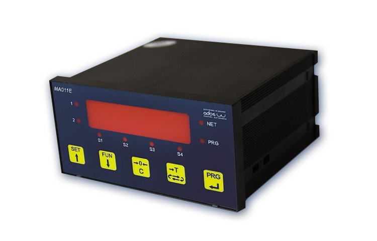 MA011E是A100E的升級換代產品。可接8個350歐姆傳感器。6位紅色LED顯示,5個操作鍵;4個報警繼電器,報警功能可選擇設定;傳感器信號范圍-3.9Mv/V..+3.9Mv/v; 輸入信號靈敏度0.02μV,RS232/RS422/RS485通訊接口,1路模擬量輸出(0-10V或4-20mA)。零點和滿量程標定采用參數輸入法或物理力標定。